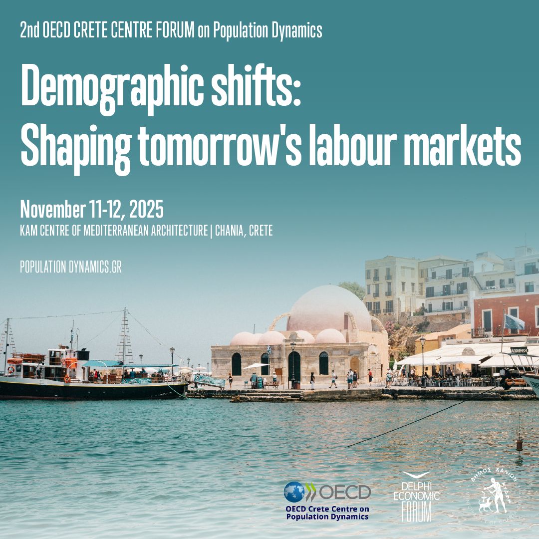 Το 2ο Ετήσιο Συνέδριο του Κέντρου Κρήτης του ΟΟΣΑ για τη Δυναμική των Πληθυσμών με τίτλο “Η πρόκληση του δημογραφικού: Διαμορφώνοντας τις αγορές εργασίας του μέλλοντος” θα διεξαχθεί την Τρίτη 11 Νοεμβρίου και την Τετάρτη 12 Νοεμβρίου στο Κέντρο Αρχιτεκτονικής Μεσογείου στα Χανιά, σε συνεργασία με τον Δήμο Χανίων και το Οικονομικό Φόρουμ των Δελφών.