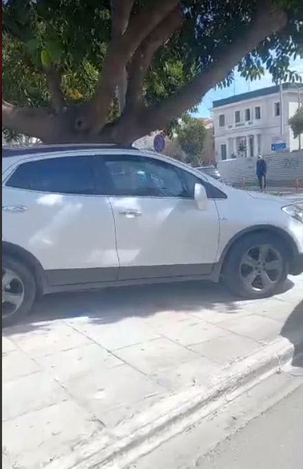 Η δεύτερη στην πλατεία Μαρκοπούλου στην Αγορά, όπου ένας απίθανος τύπος πάρκαρε το όχημά του πάνω στο πεζοδρόμιο και πάνω στη στροφή.