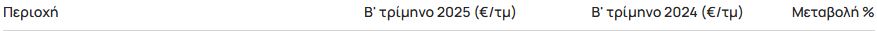 Δείτε παρακάτω την τιμή ανά τ.μ. το δεύτερο τρίμηνο του 2025 σε σύγκριση με το ίδιο χρονικό διάστημα του 2024:
