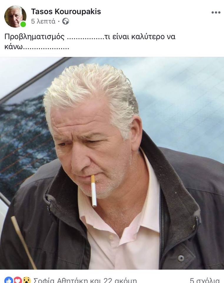 Τροφή για… εκλογό-πολιτικό προβληματισμό δίνει η σημερινή ανάρτηση του Περιφερειακού Συμβούλου, Τάσου Κουρουπάκη.