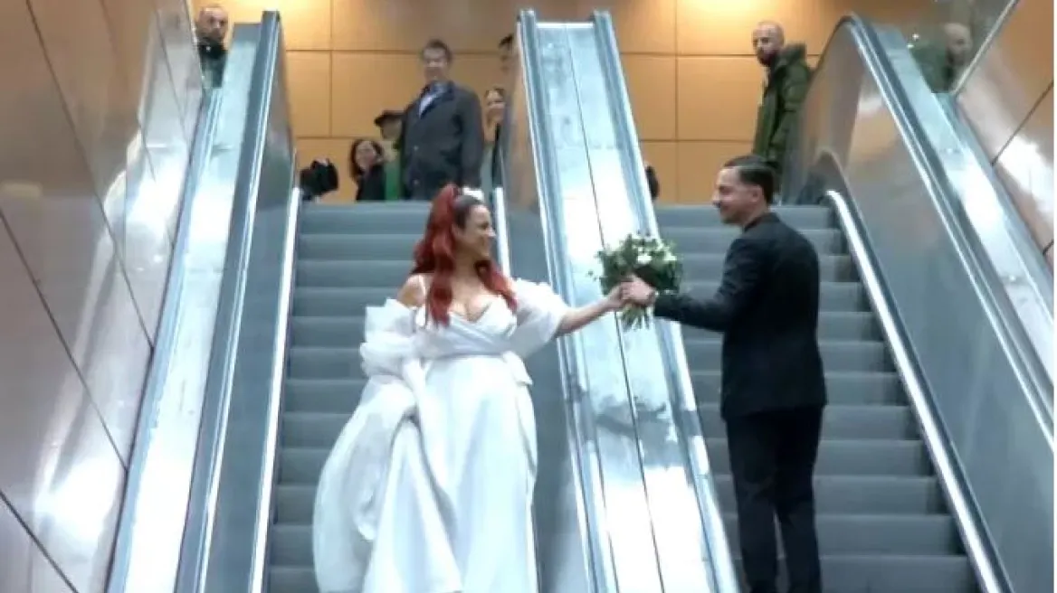 Το ζευγάρι στην πιο ευτυχισμένη μέρα της ζωής του φωτογραφήθηκε στον σταθμό του μετρό.