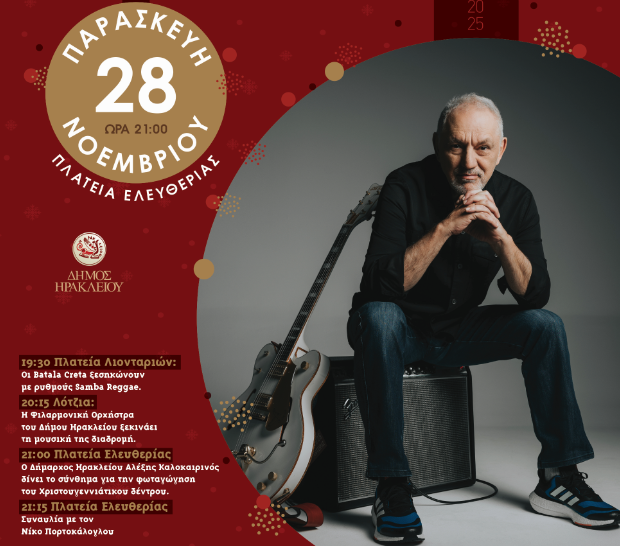 Δείτε το πρόγραμμα των εορταστικών εκδηλώσεων εδώ: https://www.heraklionculture.gr/xmas-in-heraklion/