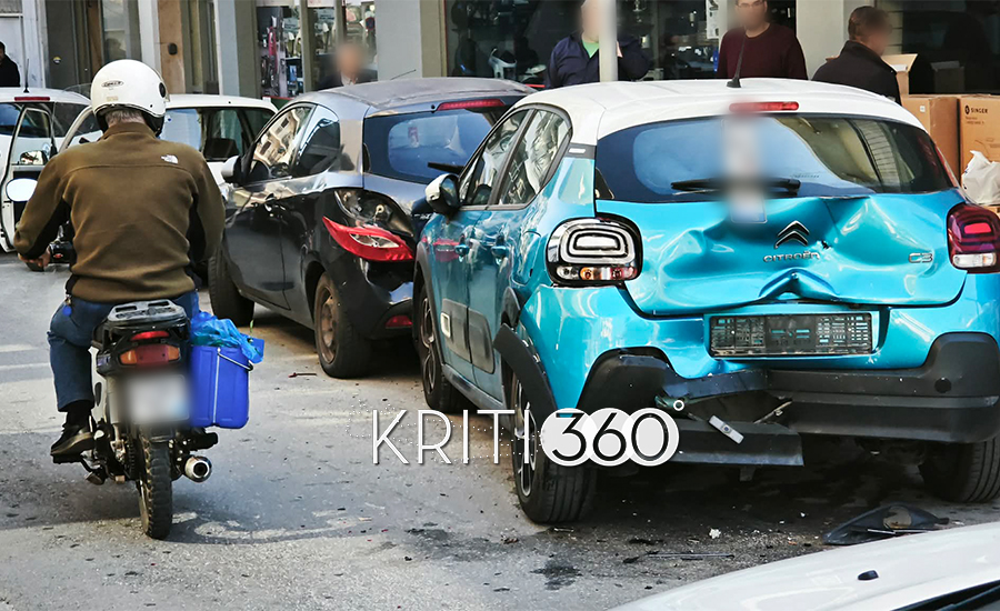 Τουλάχιστον δύο σταθμευμένα οχήματα υπέστησαν ζημιές, με κάποια άλλο διερχόμενο όχημα να χτυπάει το Citroen που βλέπετε στη φωτογραφία από πίσω και εκείνο με τη σειρά του να χτυπάει το σταθμευμένο μπροστά του όχημα.