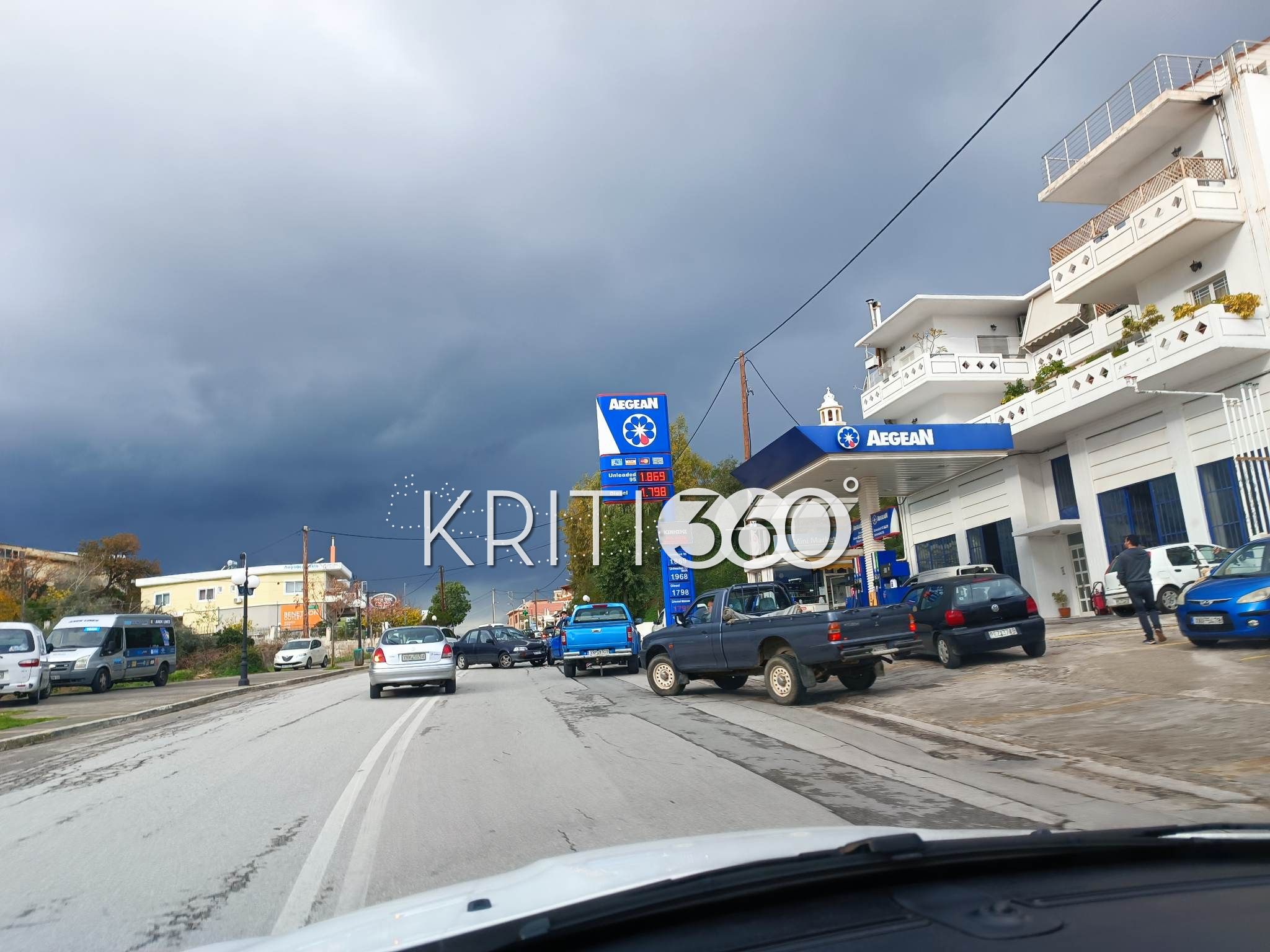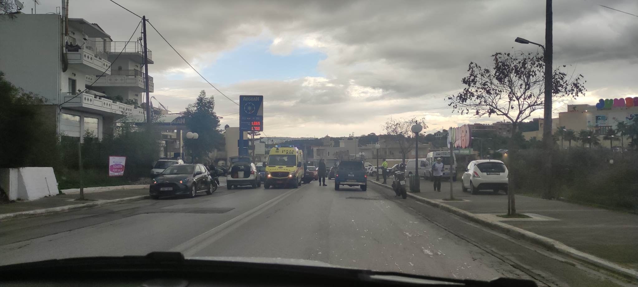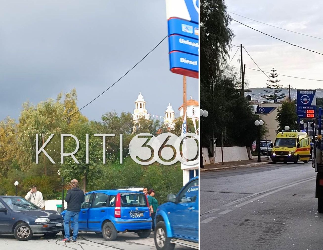 Το τροχαίο ατύχημα όπως ανέφερε και νωρίτερα το kriti360.gr, σημειώθηκε νωρίτερα στην Παρηγοριά όταν δυο ΙΧ συγκρούστηκαν σε βενζινάδικο στο ύψος του Jumbo.