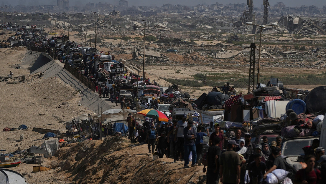 Την ίδια στιγμή, χιλιάδες Παλαιστίνιοι εγκαταλείπουν τα σπίτια τους αναζητώντας απεγνωσμένα οδό διαφυγής, καθώς η πόλη της Γάζας βομβαρδίζεται.
