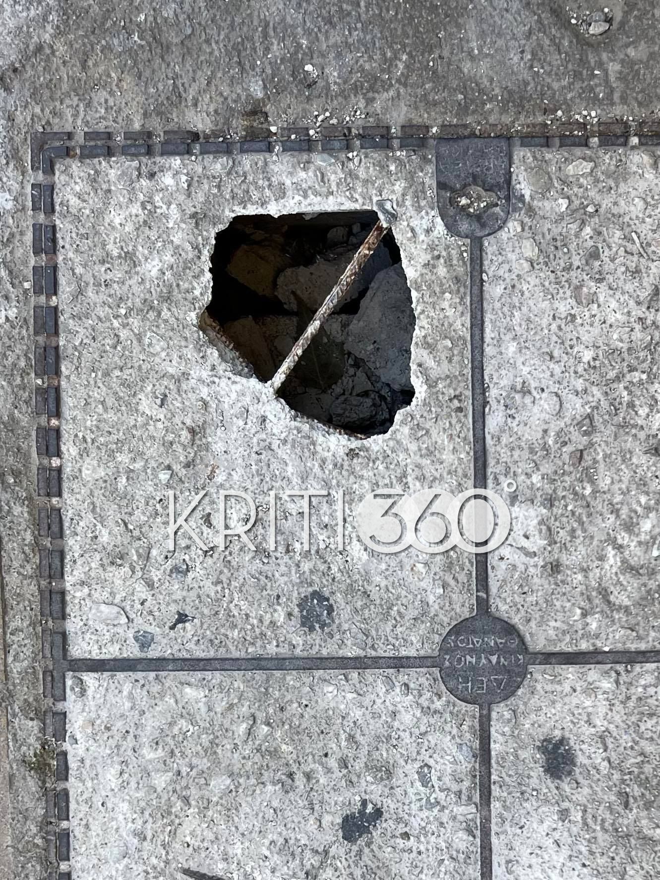 Τα τσιμεντένια καπάκια του ΔΕΔΔΗΕ αποδεικνύονται …χάρτινα με αποτέλεσμα τα πεζοδρόμια των Χανίων να γεμίζουν από τρύπες