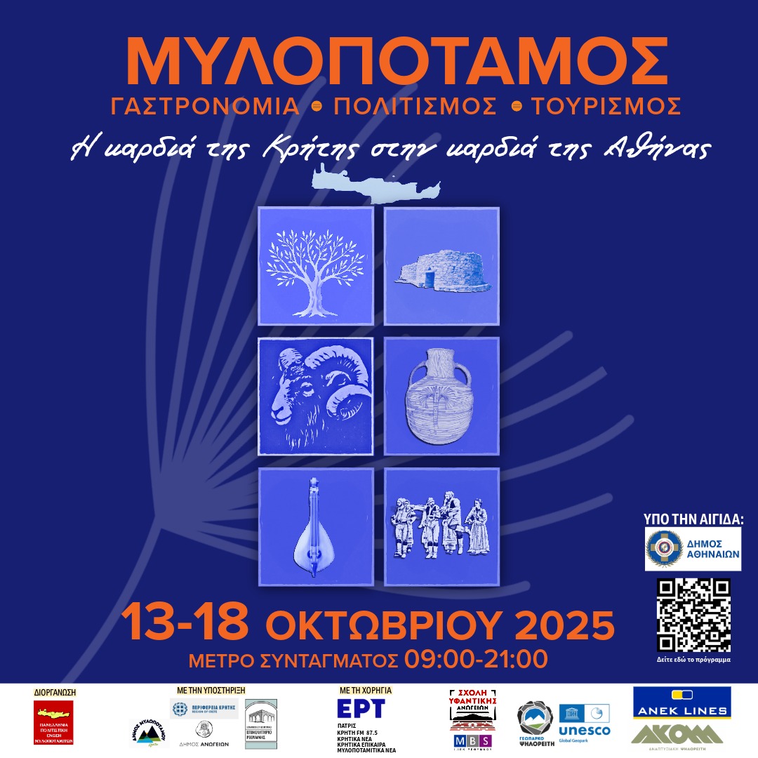 Η εκδήλωση αποτελεί έναν ζωντανό διάλογο ανάμεσα στον πολιτισμό, τη γαστρονομία και τον τουρισμό της Κρήτης. Είναι μια μοναδική ευκαιρία για το κοινό της Αθήνας και τους επισκέπτες της πόλης να γνωρίσουν από κοντά τις γεύσεις, τα αρώματα και τις τέχνες ενός από τους πιο πλούσιους πολιτιστικά τόπους της Ελλάδας – τον Μυλοπόταμο και την Κρήτη.