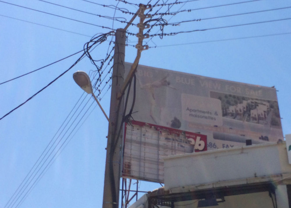Το πρώτο πράγμα που συναντά κανείς, στο πλέον ίσως πολυσύχναστο σημείο του «Κέντρου» είναι οι «ιπτάμενες» – αιωρούμενες διαφημιστικές (πάλαι ποτέ) πινακίδες που δεσπόζουν, στο άνω μέρος του ακινήτου που βρίσκεται στο συγκεκριμένο τμήμα του δρόμου.